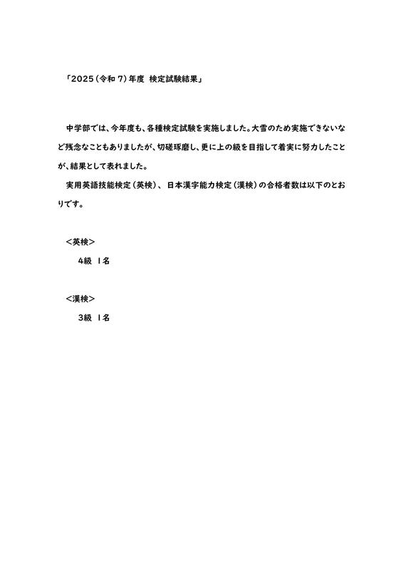2025年(令和7)年度検定試験結果(中学部)を更新しました。