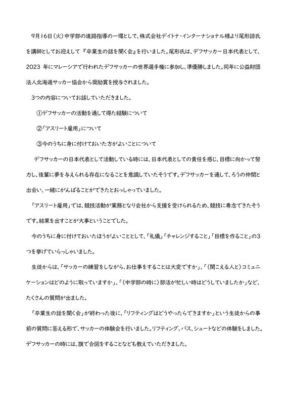 中学部の学習の様子(卒業生の話を聞く会)を更新しました。