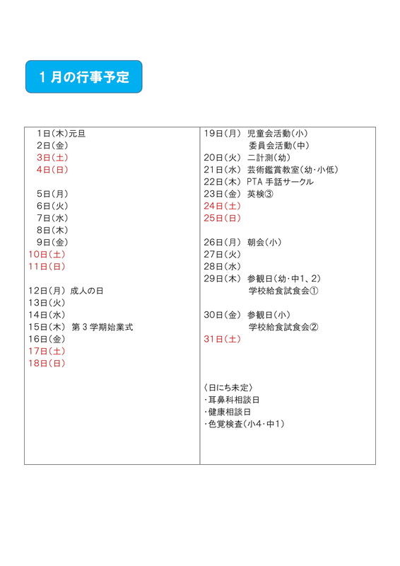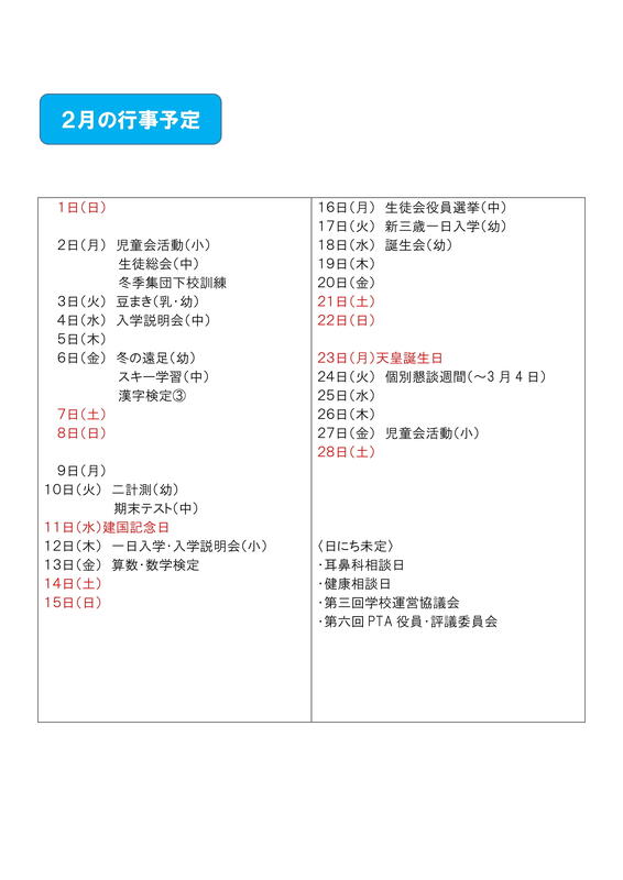 1月、2月の行事予定を更新しました。