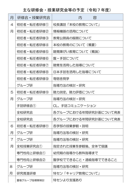 令和7年度本校における研修会・授業研究会一覧を更新しました。