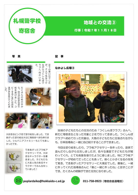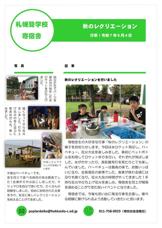 寄宿舎だより第1号を更新しました。