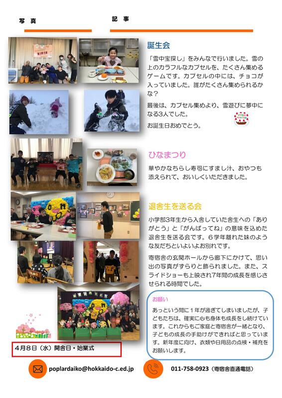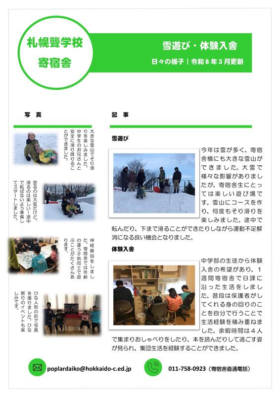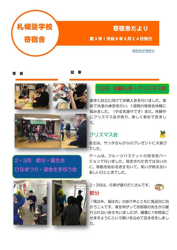 寄宿舎だより第3号を更新しました。